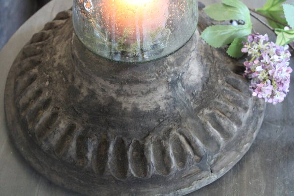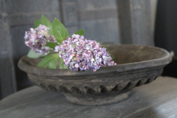 Unieke, oude stenen schaal met gave geribbelde onderkant. Je kunt deze schaal daardoor ook gerust omkeren met een windlicht erop. Ook leuk als fruitschaal. Geen perfecte recht toe recht aan schaal, maar heerlijk robuust.