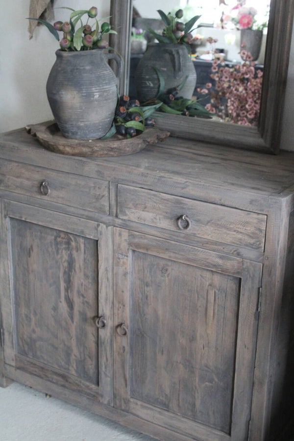 Commode 2 deurs vergrijsd teak met 2 laden