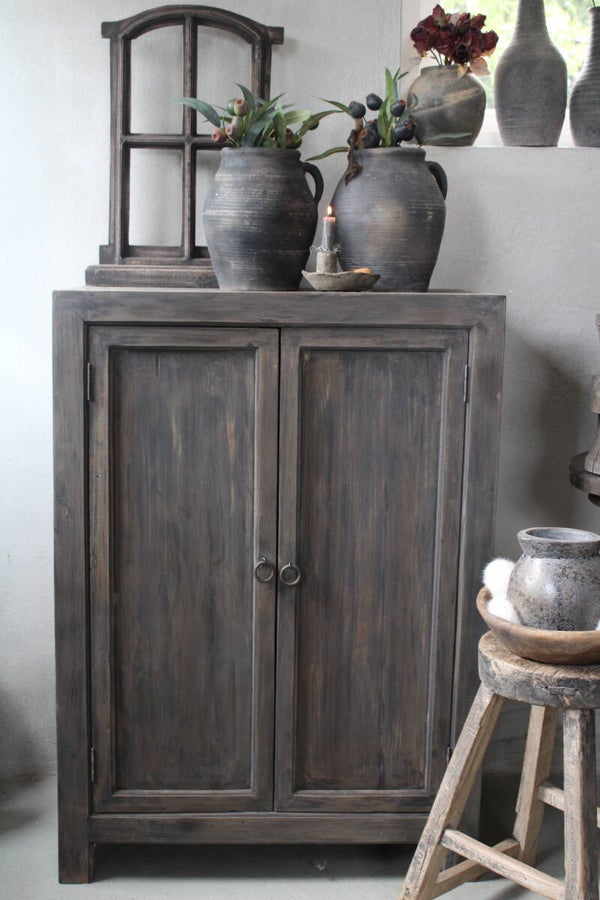 Commode 2-deurs glad vergrijsd teakhout.