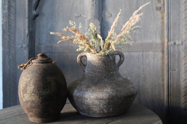 Prachtig deze vaas / kruik met een stoer, haast verweerd uiterlijk van de nieuwe serie van Suzo met 2 oortjes.