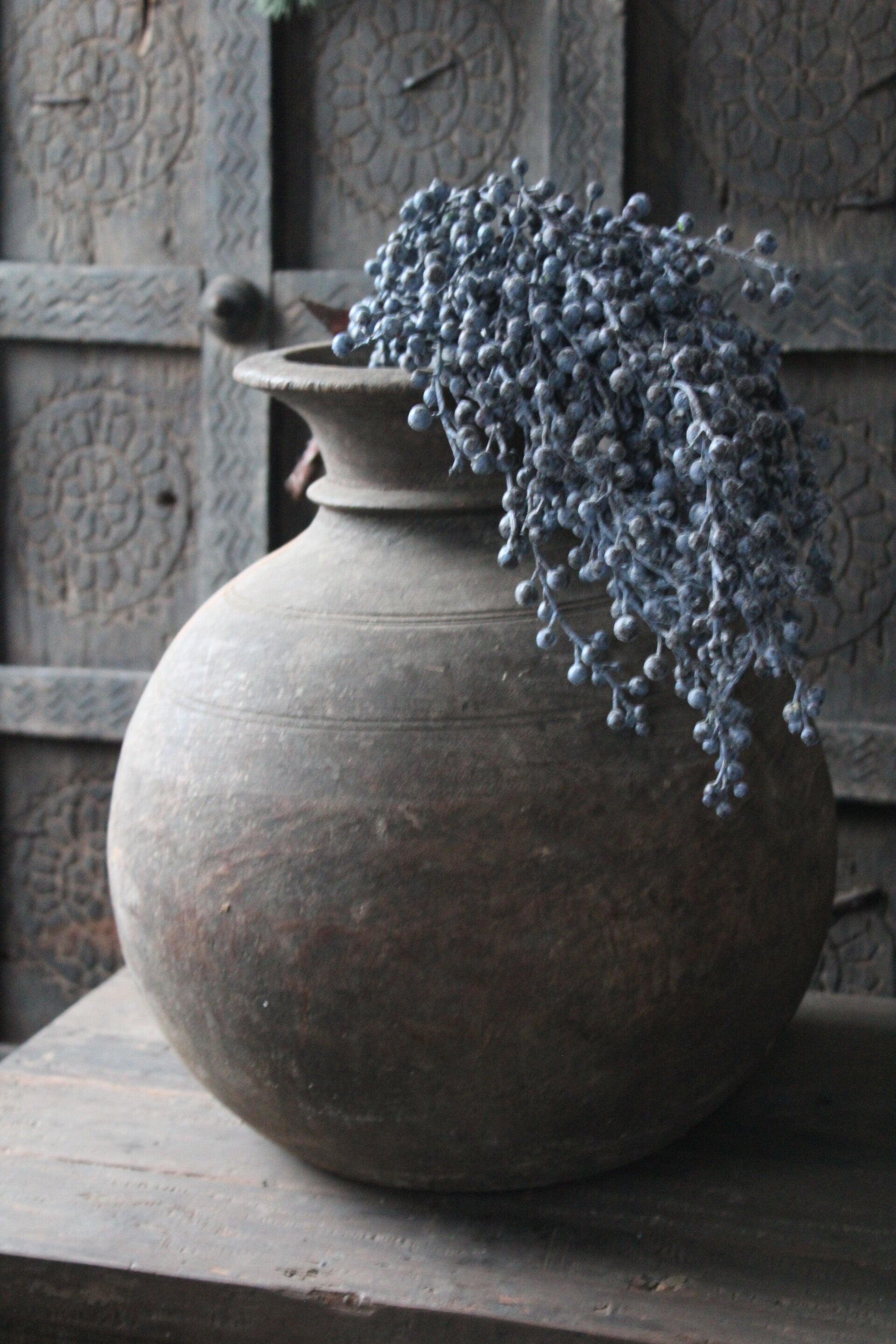 Oude nepalese pot, bolvormig. Werkelijk een prachtexemplaar en heeft maar weinig nodig om mee te decoreren.