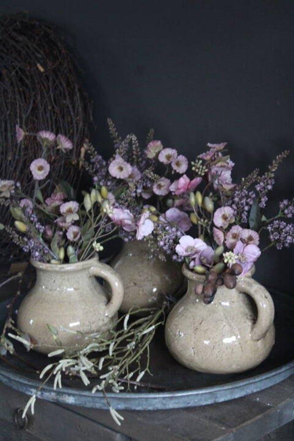 Kruik craquele Brynxz compleet opgemaakt met brynxz zijdebloemen (excl. schalen)
