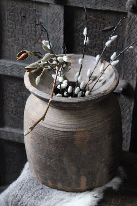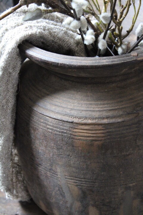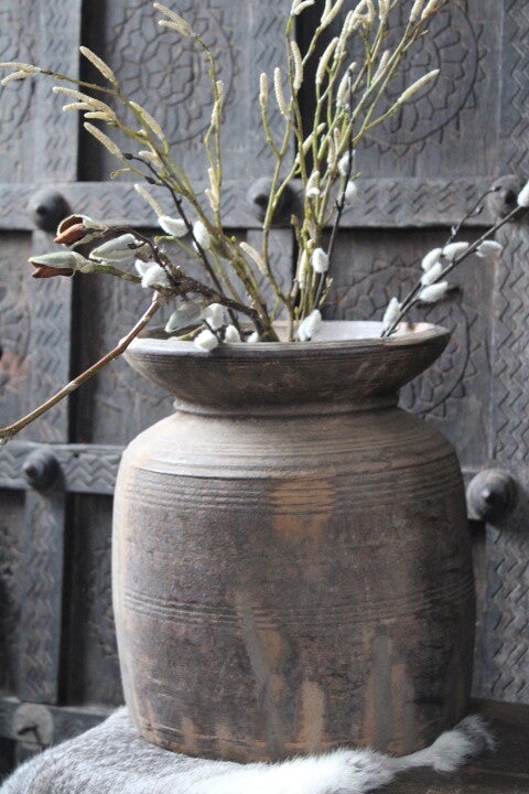 Oude, robuuste nepalese pot. De ronde vorm en subtiele houtnerf geven de pot een rustige, tijdloze uitstraling.
