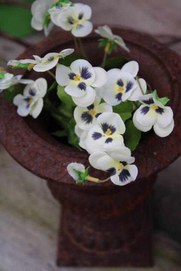 Deze kunst viooltjes zijn een subtiele en sfeervolle toevoeging aan elk interieur. De zacht roomwitte bloemen geven een frisse, landelijke uitstraling en zijn nauwelijk van echt te onderscheiden.