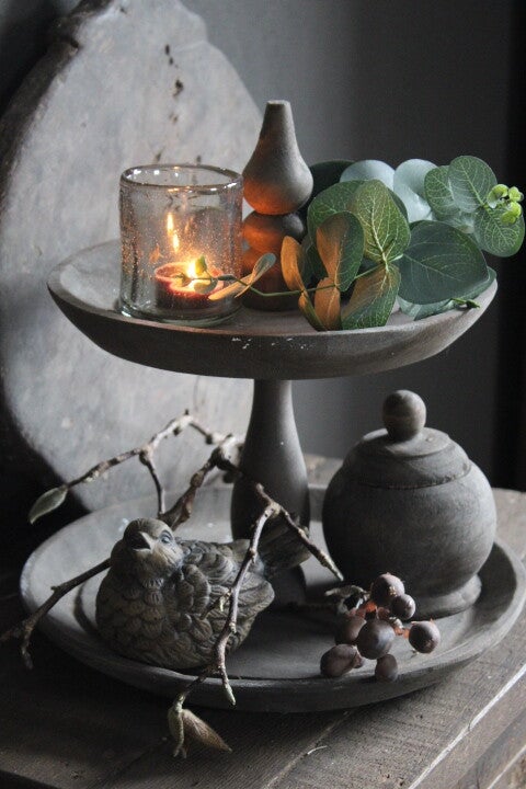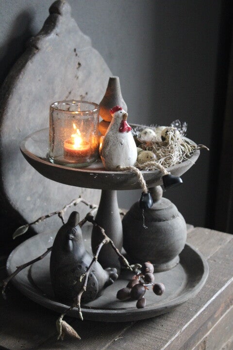 Breng sfeer in huis met deze stijlvolle etagere. Dankzij het tijdloze ontwerp en de rustige uitstraling, past deze moeiteloos op tafel, dressoir of open kast. Leuk nu te decoreren met paasdecoratie, maar geschikt voor elk seizoen.