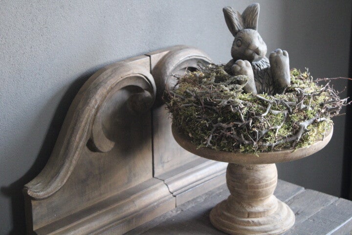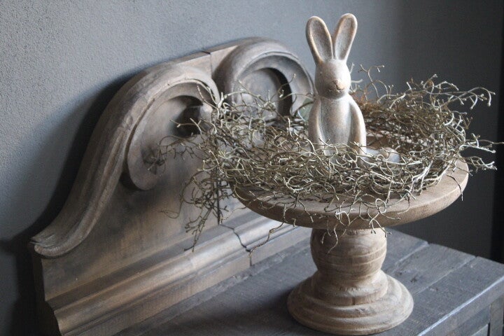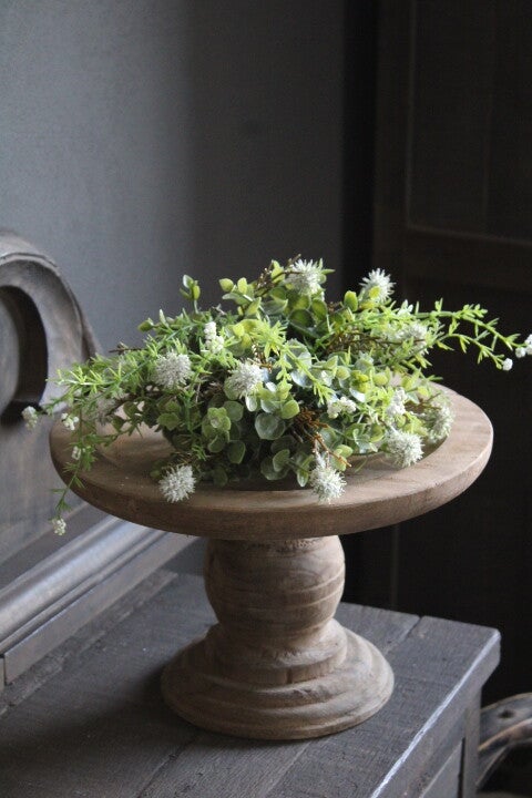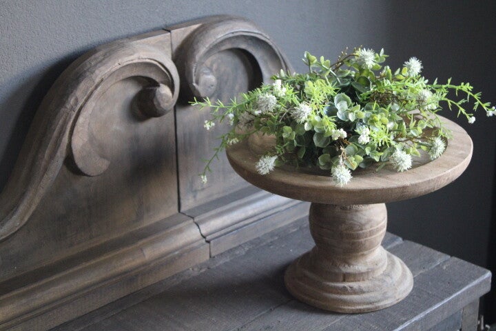 Plateau op voet teakhout. Superleuk om elk seizoen anders te decoreren. Krans erop, of waxinelichthouders of paasdecoratie. Ieder plateau is uniek en kan iets afwijken van de foto's