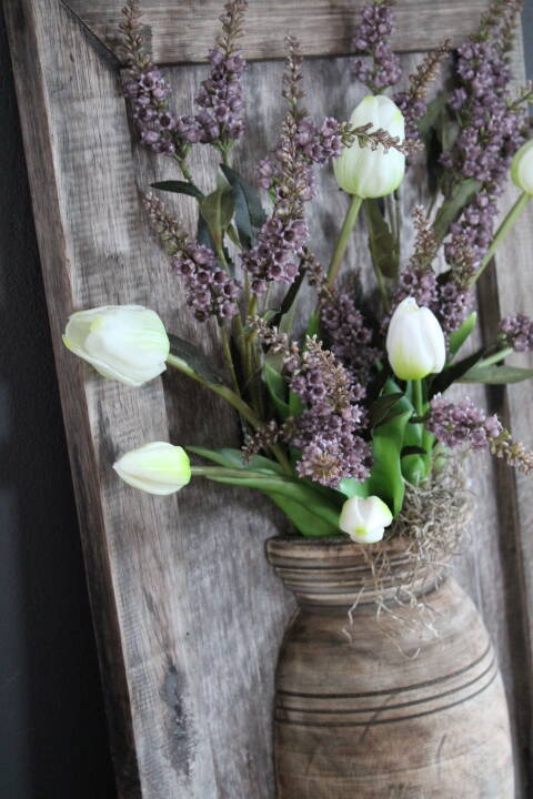 De pot biedt ruimte om het geheel naar eigen smaak te decoreren met zijden bloemen, takken of droogbloemen. Eenvoudig wisselen per seizoen