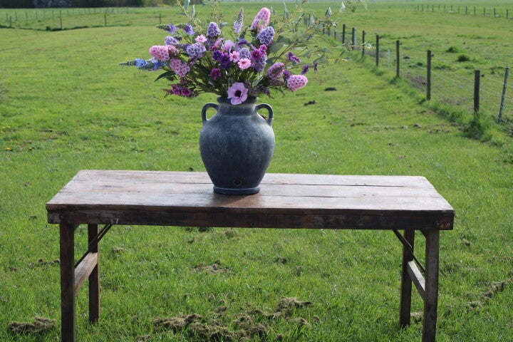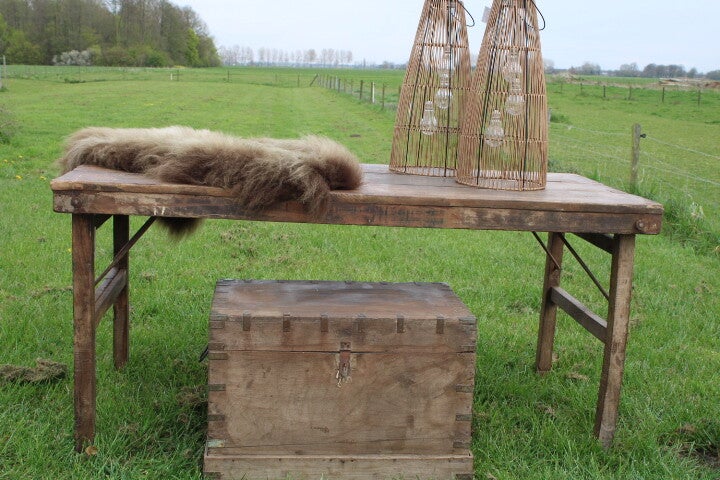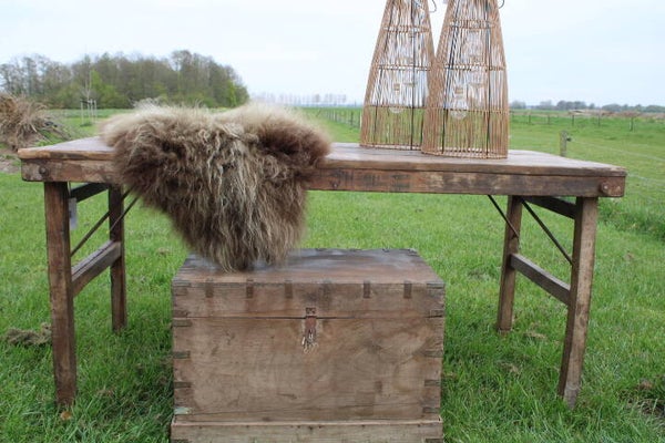 Uiteraard kan deze tafel zowel binnen als buiten. Geschikt als eettafel, werktafel of decoratief. Zet je deze buiten, dan kan deze verweren, wat ook zijn charme heeft. Leuk om aan deze tafel buiten te eten.