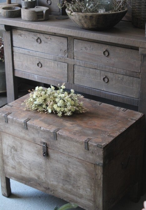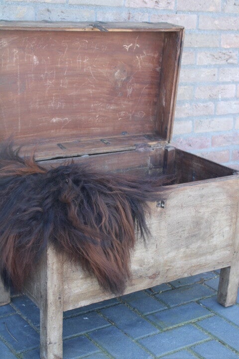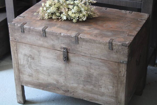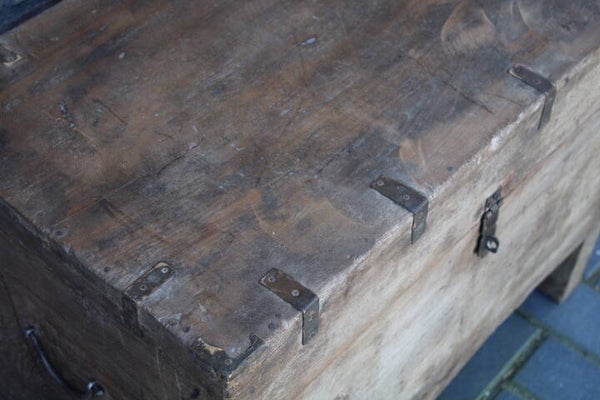 Oude houten authentieke kist uit India. Prachtig exemplaar, handig als opberger, maar ziet er ook sfeervol uit voor een stoer, landelijk en/of sober interieur. Deze is uiteraard ook perfect te gebruiken als salontafel of bijzettafel